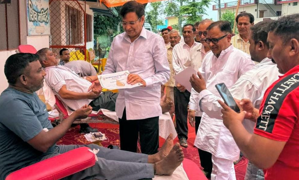 देहरादून। रविवार को भारतीय सेना के वीर जवानों के शौर्य और साहस को नमन करते हुए ‘उत्तराखंड रेड क्रॉस सोसायटी’ द्वारा पछुआदून जिला कांग्रेस कमेटी के पूर्व अध्यक्ष संजय किशोर के सहयोग से विकासनगर के ग्राम बालूवाला स्थित शिव मंदिर के प्रांगण में आयोजित ब्लड डोनेशन कैम्प में बतौर मुख्य अतिथि शिरकत कर रक्तदाताओं से मुलाकात की तथा प्रमाण पत्र वितरित किये।
