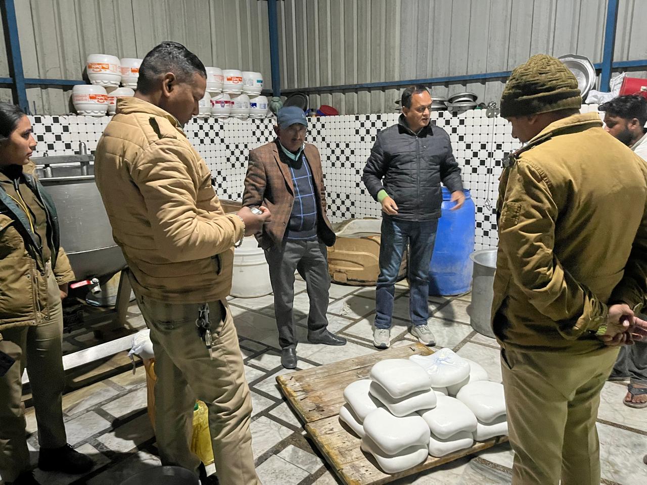 जिला खाघ सुरक्षा अधिकारी हरिद्वार महिमानंद जोशी ने बताया कि देर रात्रि को उपायुक्त गढ़वाल आर एस रावत के नेतृत्व में तथा उनके द्वारा एवं वरिष्ठ खाघ सुरक्षा अधिकारी दिलीप जैन व पवन कुमार की टीम के साथ इब्राहिमपुर स्थित पनीर एवं दही निर्माण इकाई पुंडीर फैक्ट्री में छापा मारा गया। छापे के दौरान पाया गया कि उक्त फैक्ट्री में बिना फूड लाइसेंस के अवैध रूप से संचालित होना पाया गया तथा मौके पर अनिवार्य दस्तावेज प्रस्तुत न करने पर उक्त पनीर निर्माण इकाई को अग्रिम आदेशों तक बंद करा दिया गया, तथा मौके पर पनीर एवं दही के दो नमूने लेकर राजकीय खाघ प्रयोगशाला रुद्रपुर जांच हेतु भेजा गया है इस कार्रवाई के दौरान पथरी थाना का पुलिस दल भी मौजूद रहा। उन्होंने अवगत कराया है कि महाशिवरात्रि पर्व को ध्यान में रखते हुए कांवड़ पटरी मार्ग चंडी पुल से चिड़ियापुर तक पटरी मार्ग पर स्थित अस्थाई खाघ स्टॉल एवं भंडारों का निरीक्षण किया गया इस दौरान टीम द्वारा कूड़े का उचित निस्तारण करने, रेट लिस्ट चस्पा करने, खाघ रजिस्ट्रेशन बनवाने की विशेष निर्देश दिए गए। उन्होंने यह भी बताया कि दिलीप जैन के नेतृत्व में इंडस्ट्रियल एरिया स्थित कोल्ड ड्रिंक के दो गोदाम का निरीक्षण किया गया, निरीक्षण के दौरान माजा एवं फेंटा कोल्ड ड्रिंक के दो नमूने जांच हेतु लिए गए तथा निरीक्षण में पायी गयीं अनिमियताओं के संबंध में दोनों स्टोरेज मालिकों को नोटिस जारी किया गया। उन्होंने अवगत कराया है कि खाघ सुरक्षा अधिकारी पवन कुमार के नेतृत्व में पंत द्वीप पार्किंग में अस्थाई एवं स्थाई खाघ प्रतिष्ठानों का निरीक्षण किया गया इस दौरान कुल 12 खाघ प्रतिष्ठानों का निरीक्षण किया गया जिसमें तीन खाघ प्रतिष्ठानों के फूड लाइसेंस न होने के कारण नोटिस जारी किया गया।