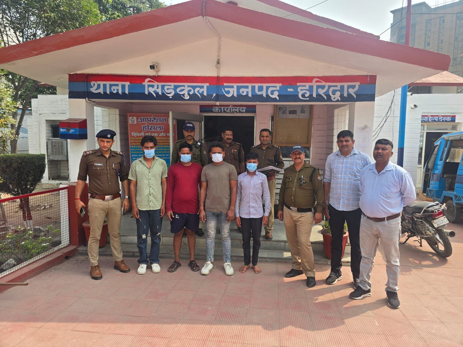 जानकारी के अनुसार बीती 5 मार्च को थाना सिडकुल में प्रमोद पाल ने तहरीर देकर बताया गया था कि राजीव पाल व उसके साथियों ने लाठी—डंडो व तलवार से लैस होकर उनके घर में घुसकर उनके व उनके परिजनों के साथ मारपीट की गयी साथ ही गाली—गलौज की और जान से मारने की धमकी दी। बताया कि इसके साथ ही उन लोगोंं ने जान से मारने की नीयत से तमंचे से फायर भी किया गया। मामले की गम्भीरता को देखते हुए पुलिस ने तत्काल मुकदमा दर्ज कर आरोपियो की तलाश शुरू कर दी गयी। मामले में फरार चल रहे चार आरोपियों को पुलिस ने बीती शाम गिरफ्तार कर लिया है। जबकि अन्य की तलाश जारी है। गिरफ्तार आरोपियों के नाम जतिन उर्फ भारत पुत्र परमाल सिंह निवासी जयराम जोत, थाना कर्नलगंज, जिला गोंडा (उ.प्र.), राजीव पाल पुत्र जंग बहादुर निवासी ग्राम मंसूरपुर, थाना मंसूरपुर, जिला मुजफ्फरनगर (उ.प्र.), रोहन सिंह पुत्र सुरेश कुमार निवासी ग्राम धारूवाला मंडावली, थाना बिजनौर, जिला बिजनौर (उ.प्र.) व सागर पुत्र मामचंद निवासी ग्राम रामपुर मनिहारन, थाना मनिहारन, जिला सहारनपुर (उ.प्र.) बताये जा रहे है।