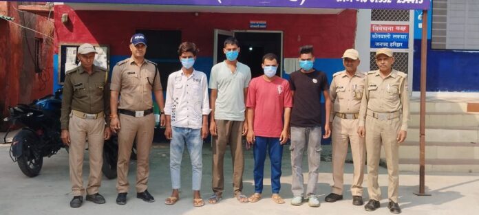 जानकारी के अनुसार कोतवाली लक्सर पुलिस गश्त पर थी। इस दौरान पुलिस ने अलग—अलग स्थानों से चार संदिग्धो को हिरासत में लिया। जिनके पास से चार चाकू भी बरामद हुए है। पुलिस के अनुसार पकड़े गये चारों व्यक्ति थाना क्षेत्र में अलग—अलग स्थानो पर चाकू लेकर लोगो को डरा धमकाकर किसी बडी घटना को अंजाम देने के फिराक में थे, जिन्हे पुलिस की सतर्कता से समय रहते चाकू के साथ गिरफ्तार किया गया। पूछताछ में उन्होने अपना नाम कुमरुल पुत्र बाबू निवासी मौहम्मदपुर कुन्हारी बडी मस्जिद के पास थाना कोत0 लक्सर जनपद हरिद्वार, साहिल पुत्र सफीक निवासी मोहम्मदपुर कुन्हारी थाना कोतवाली लक्सर जनपद हरिद्वार, समीर पुत्र मोहब्बत अली निवासी मौहम्मदपुर कुन्हारी थाना कोतवाली लक्सर जनपद हरिद्वार व साहिल पुत्र राशिद अली निवासी बडी मस्जिद के पास कुन्हारी थाना कोतवाली लक्सर जनपद हरिद्वार बताया। पुलिस ने उनके खिलाफ आर्म्स एक्ट की धाराओ में मुकदमा दर्ज कर उन्हे न्यायालय में पेश किया जहंा से उन्हे जेल भेज दिया गया है।