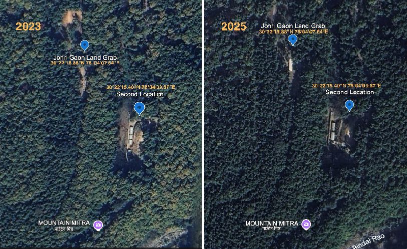 पेड़ गिराये जाते रहे, जमीन साफ की गई और फिर संरक्षित वन भूमि पर निर्माण कार्य होने से लेकर बिजली लाइन तक पहुंचाने का काम हो रहा था तब तक क्या इसकी भनक भी जंगलात के अफसरों को नहीं थी अगर जानकारी थी तो यह सारा खेल किसके इशारे पर हो रहा था? 2020—22 तक जोहड़ी गांव क्षेत्र का जो भूभाग घने जंगलों से आच्छादित था, 2025—26 तक जगह—जगह कैसे खाली हो गया? सैटेलाइट तस्वीरों में यह साफ देखा जा सकता है। सांध्य दैनिक ट्टदून वैली मेल’ द्वारा ड्रोन से ली गई इन तस्वीरों में इसे साफ देखा जा सकता है। पर्यावरण संरक्षण के सरोकारों के तहत अखबार द्वारा जब इसे उजागर किया गया तब क्षेत्र वासियों का ध्यान इस पर गया जिसके बाद हंगामा हुआ तथा विरोध प्रदर्शन के लिए लोग सड़कों पर आ गए। विघुत लाइन बिछाये जाने का विरोध कर रहे क्षेत्र वासियों ने यहां से बिजली कर्मियों को खदेड़े जाने के बाद वन विभाग के अधिकारी मौके पर पहुंचे और उनकी मजबूरी बन गई कि अवैध कब्जा और बिजली लाइन बिछाने वाले ऊर्जा विभाग के कर्मचारियों पर मुकदमा दर्ज कराया जाए। अब यह मीडिया संस्थानों की खबर तो बननी ही थी।