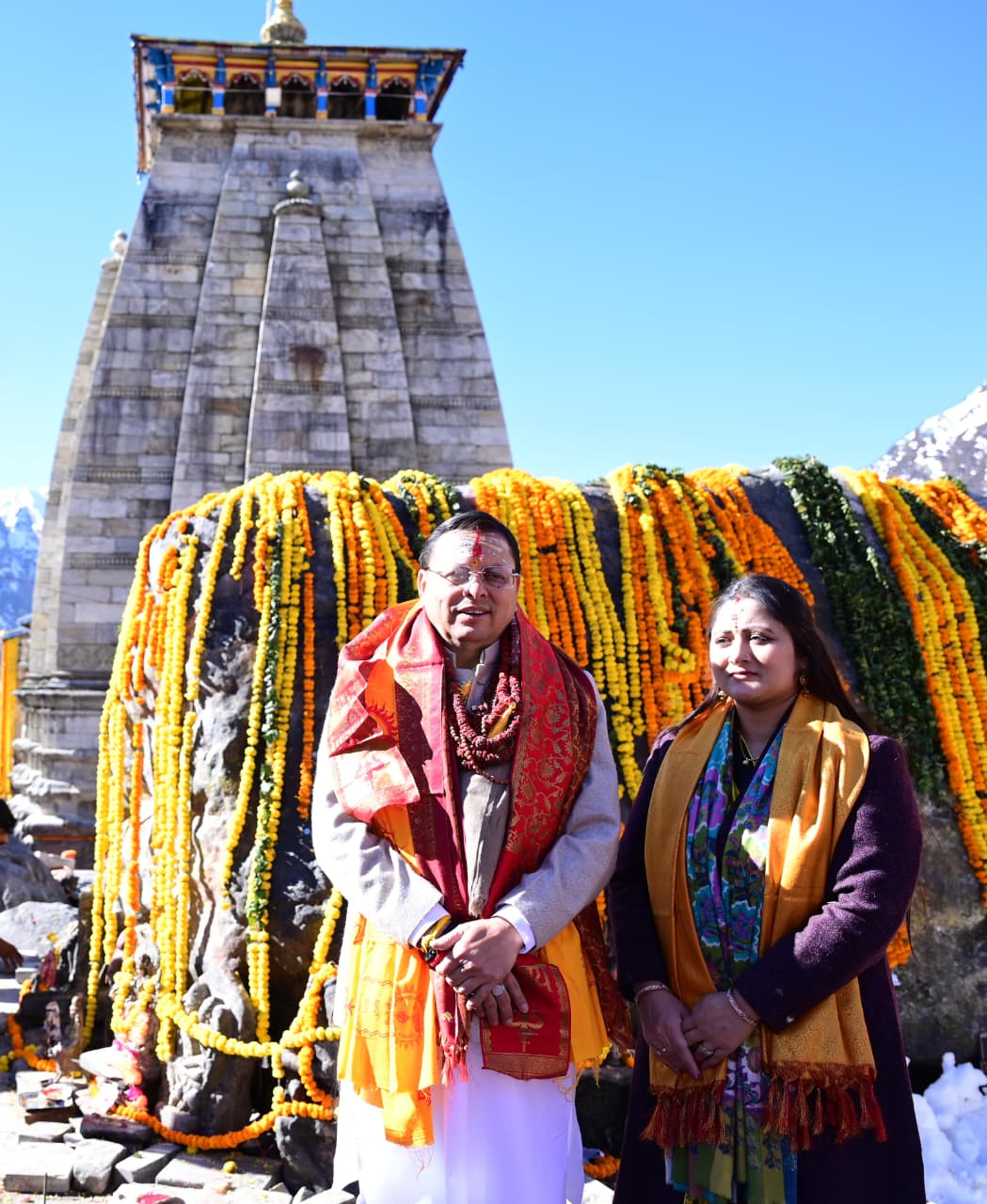 इस पावन अवसर पर प्रदेश के मुख्यमंत्री पुष्कर सिंह धामी भी उपस्थित रहे और उन्होंने बाबा केदारनाथ के दर्शन कर प्रदेश एवं देश की सुख, समृद्धि और शांति की कामना की। सिख रेजीमेंट के बैंड की भक्तिमय धुनों के बीच कपाट उद्घाटन का यह दिव्य क्षण और भी अलौकिक बन गया। मुख्यमंत्री पुष्कर सिंह धामी ने समस्त देशवासियों को शुभकामनाएं देते हुए कहा कि केदारनाथ धाम न केवल सनातन धर्मावलंबियों की आस्था का प्रमुख केंद्र है, बल्कि यह भारत की समृद्ध आध्यात्मिक और सांस्कृतिक विरासत का भी प्रतीक है। उन्होंने कहा कि चारधाम यात्रा हर वर्ष नए कीर्तिमान स्थापित कर रही है और इस वर्ष भी बाबा केदार के आशीर्वाद से यात्रा ऐतिहासिक होगी। उन्होंने कहा कि राज्य सरकार द्वारा चारधाम यात्रा को सुरक्षित, सुव्यवस्थित एवं सुगम बनाने के लिए व्यापक इंतजाम किए गए हैं। उन्होंने सभी उत्तराखंडवासियों से देश—विदेश से आने वाले श्रद्धालुओं के प्रति सेवा और आतिथ्य भाव बनाए रखने का आह्वान किया।