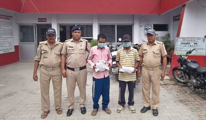 जानकारी के अनुसार बीती दो अगस्त को बिजेंन्द्र कुमार कपिल पुत्र कुरडी सिंह निवासी गणेश विहार सीतापुर द्वारा कोतवाली ज्वालापुर में तहरीर देकर बताया गया था कि अज्ञात चोरों द्वारा 1 अगस्त की रात मंदिर के अंन्दर से गल्ला तोड़ने व शिवलिंग पर रखा नाग व तांबे के लोटे,आरती दानी घन्टी अष्टधातु की पंचमुखी हनुमान मूर्ति, लोहे का कटोरा व शनि देव का दीपक व लगभग 500 रूपये चोरी कर लिये गये है। मामले में पुलिस ने मुकदमा दर्ज कर चोरों की तलाश शुरू कर दी गयी। चोरो की तलाश में जुटी पुलिस टीम द्वारा बीती शाम एक सूचना के आधार पर उक्त चोरी में शामिल दो चोरों को गिरफ्तार कर लिया गया। जिन्होने पूछताछ में अपना नाम गुलफाम पुत्र हबीब व अफजाल पुत्र इस्लाम निवासी बडी सड़क मोहल्ला पावधोई कोतवाली ज्वालापुर हरिद्वार को मय चोरी के सामान के साथ ट्रांसपोर्ट नगर सराय रोड से गिरफ्तार किया गया है। जिन्हे न्यायालय में पेश कर जेल भेज दिया गया है।