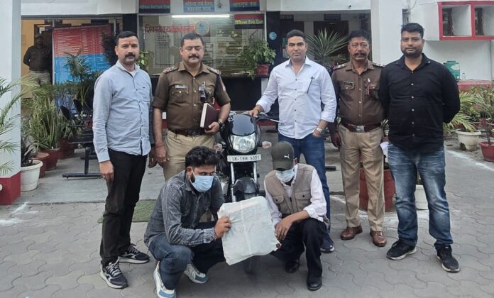 जानकारी के अनुसार बीते रोज कोतवाली हल्द्वानी पुलिस व एसओजी टीम को सूचना मिली कि क्षेत्र में कुछ नशा तस्कर नशीले पदार्थो की डिलीवरी हेतू आने वाले है। सूचना पर कार्यवाही करते हुए पुलिस व एसओजी टीम द्वारा क्षेत्र में संयुक्त चैकिंग अभियान चला दिया गया। इस दौरान संयुक्त टीम को रामलीला ग्राउंड के पास बाइक सवार दो संदिग्ध आते हुए दिखायी दिये। टीम द्वारा जब उन्हे रूकने का इशारा किया गया तो वह बाइक मोड़कर भागने लगे। इस पर उन्हे घेर कर दबोचा गया। तलाशी के दौरान उनके पास से 445 ग्राम अफीम बरामद हुई। पूछताछ में उन्होने अपना नाम अतुल सागर पुत्र राजेंद्र सागर निवासी ग्राम नूरपुर पोस्ट ढकिया नंबर वन 1 थाना आईटीआई जिला उधमसिंह नगर व बलविंदर सिंह पुत्र सुखदेव सिंह निवासी हजीरा गांव बरहनी थाना बाजपुर बताया। बताया कि वह लोग बरामद अफीम अनुराग कश्यप नाम के व्यक्ति जो कि ढकिया उधमसिंह नगर का रहने वाला है से लेकर आए हैं, तथा अधिक लाभ प्राप्त करने हेतु हल्द्वानी के युवाओं को बेचने की फिराक में थे इससे पहले गिरफ्तार हो गए। पुलिस ने उनके खिलाफ एनडीपीएस एक्ट की धाराओं में मुकदमा दर्ज कर उन्हे न्यायालय में पेश किया जहंा से उन्हे जेल भेज दिया गया है।